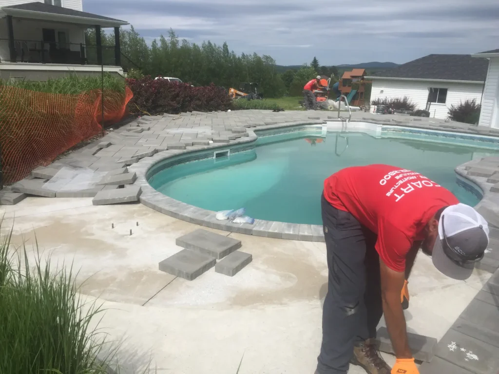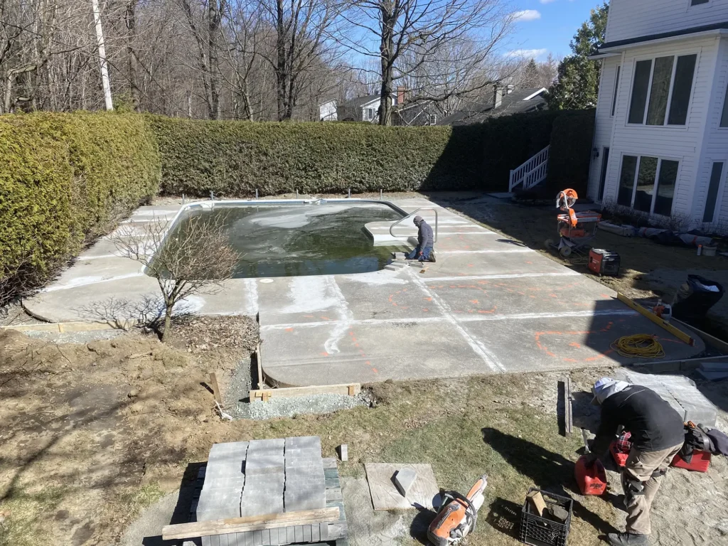 - Recouvrement de trottoir en béton existant avec agrandissement, technique durable et esthétique.